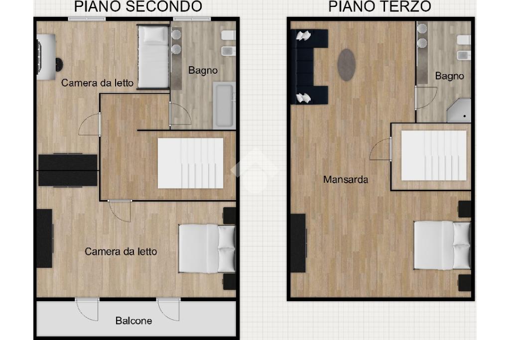 All’ultimo piano è presente la mansarda, uno spazio versatile che può essere utilizzato come locale hobby, studio o terza camera per eventuali ospiti, grazie anche alla presenza di un bagno privato finestrato con box doccia.