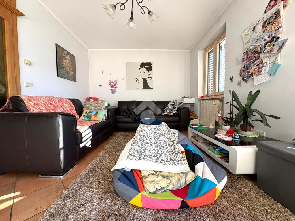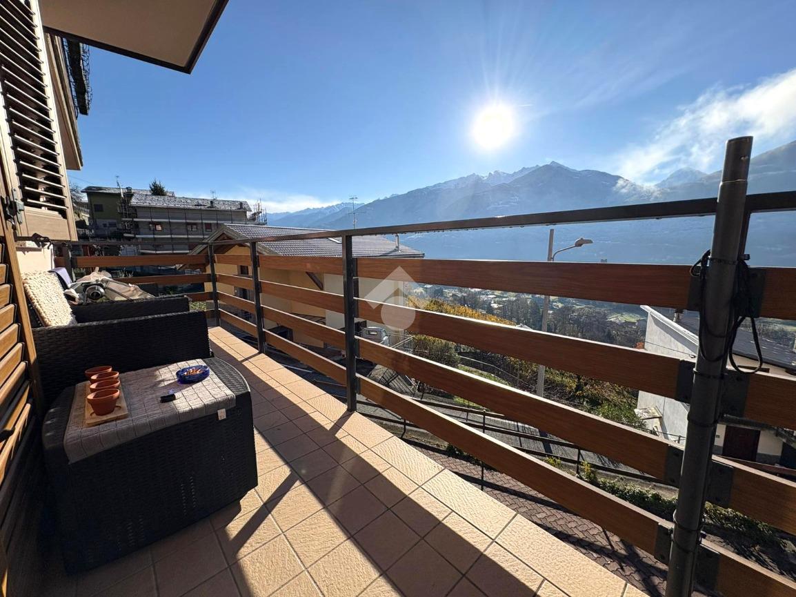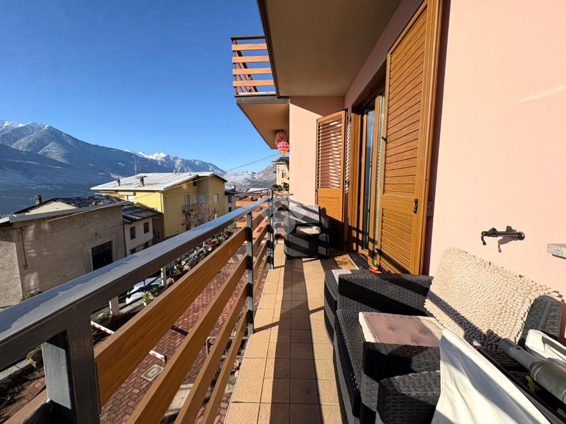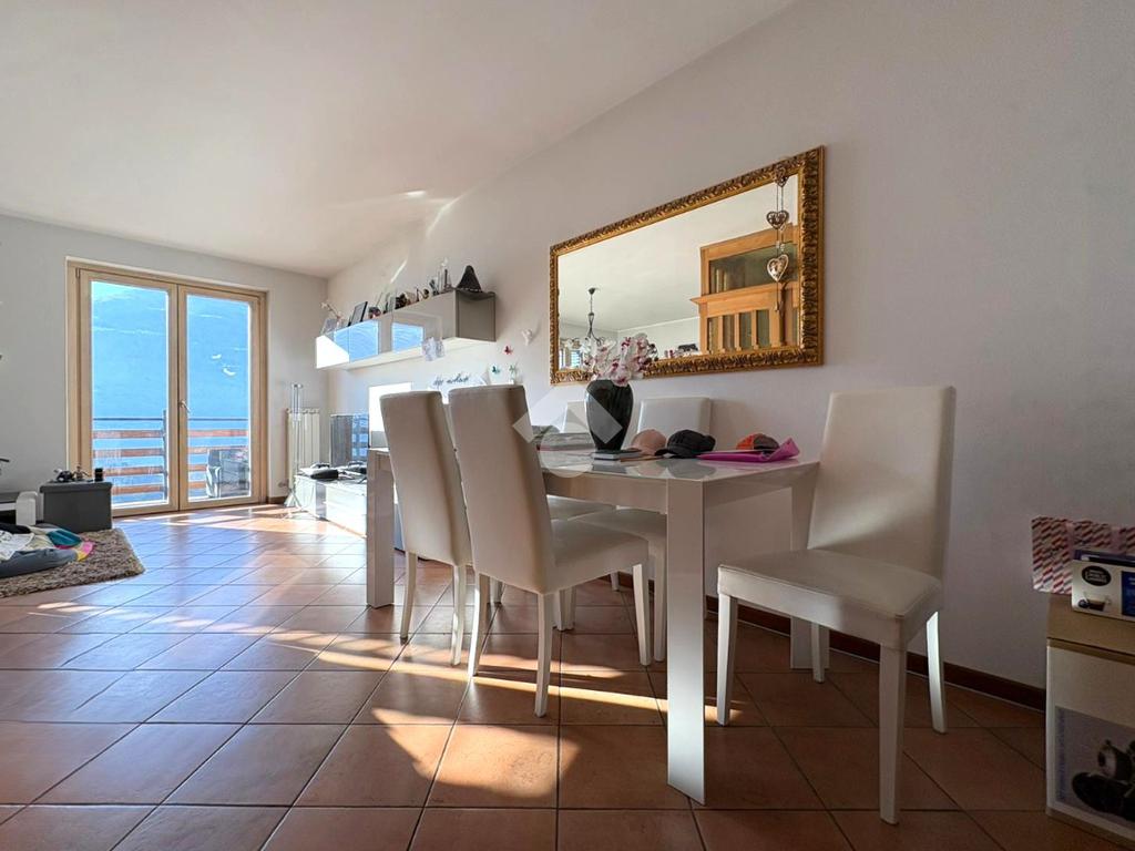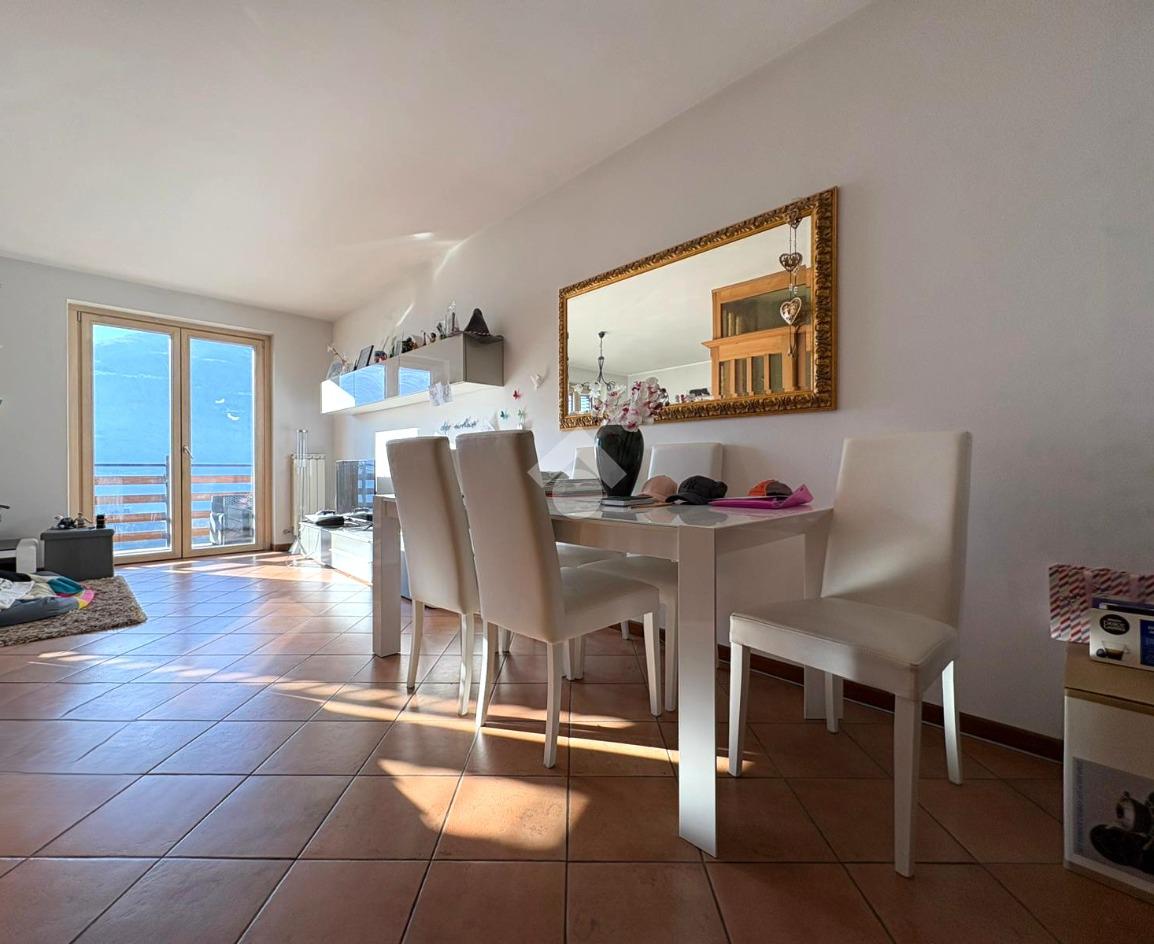 Il soggiorno, anch’esso parte dell’open space, permette l’uscita su un balcone esposto a sud, da cui si può godere della vista sul Castel Grumello.