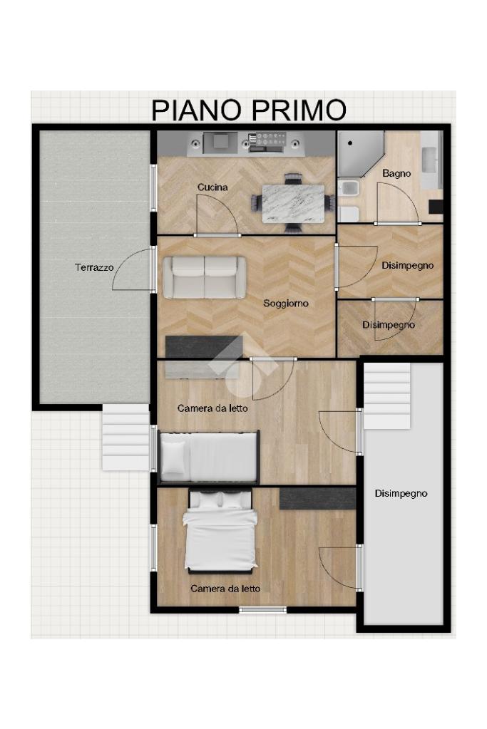 Dalla zona giorno si accede direttamente al terrazzo, perfetto per pranzi all’aperto, momenti di relax e piacevoli serate durante la bella stagione.