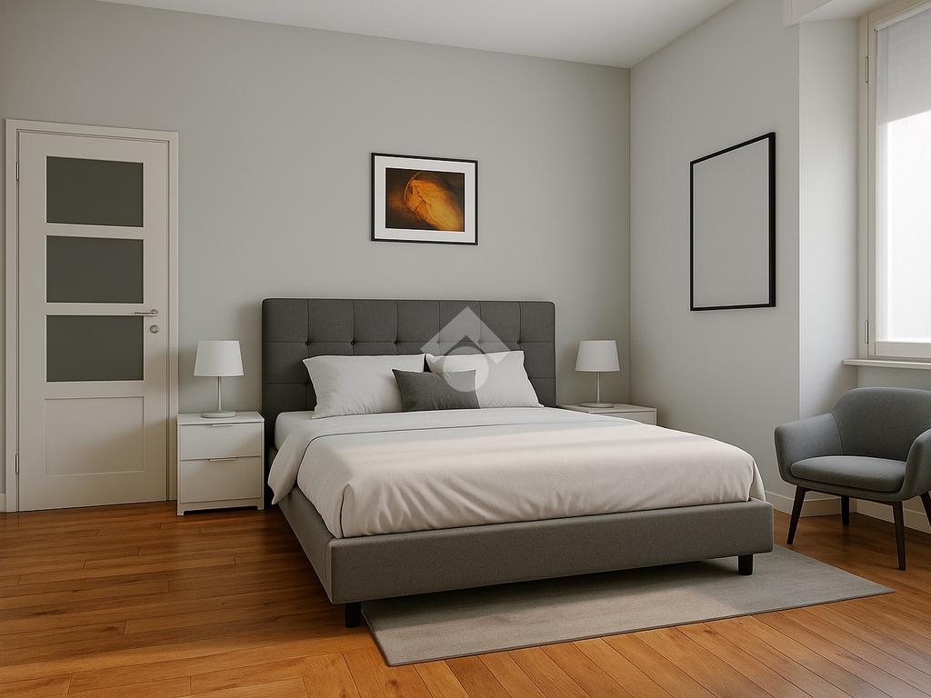 La zona notte include una spaziosa camera matrimoniale con balcone privato e una seconda camera, attualmente arredata con due letti singoli, anch’essa dotata di uscita esterna.