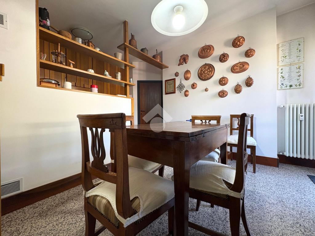 L'unità abitativa è costituita da ingresso, sala pranzo, soggiorno con camino, disimpegno bagno, due ripostigli e ampio locale guardaroba al secondo livello.
