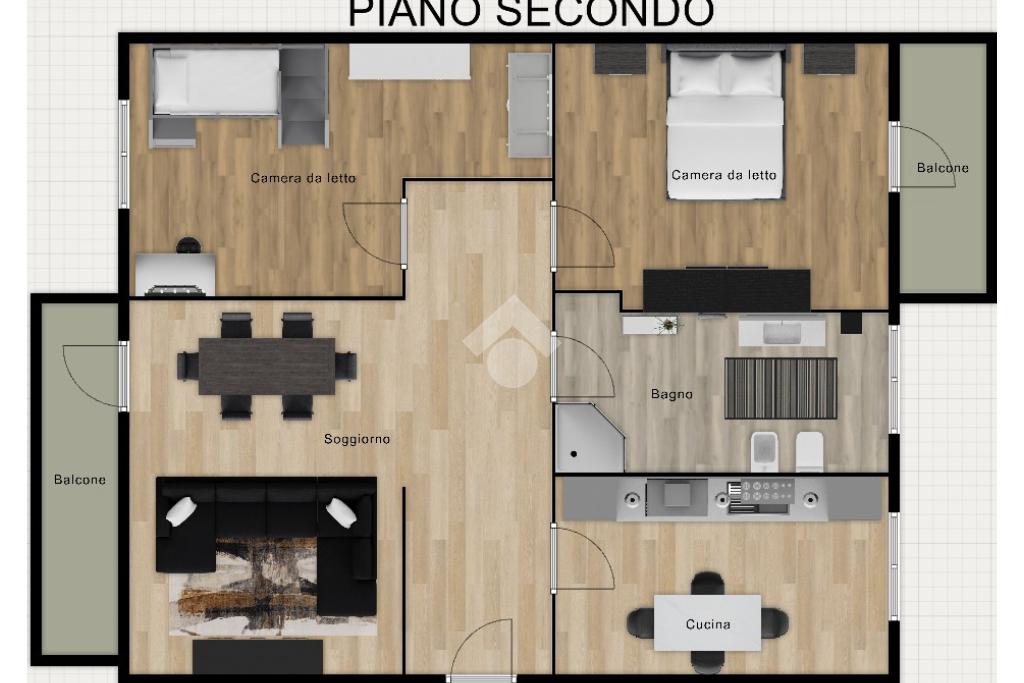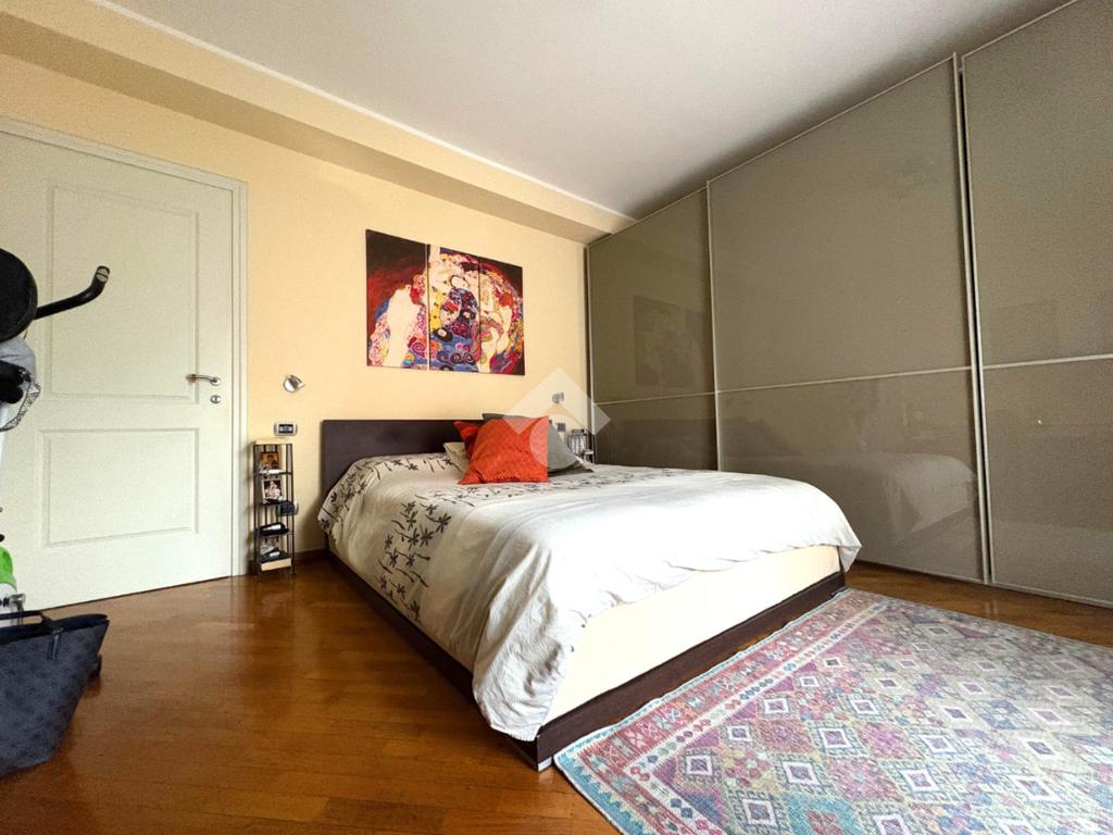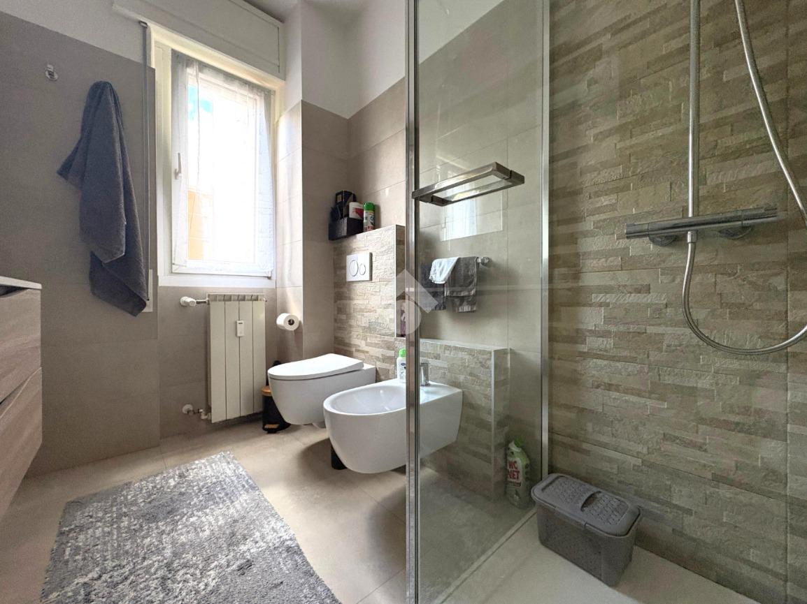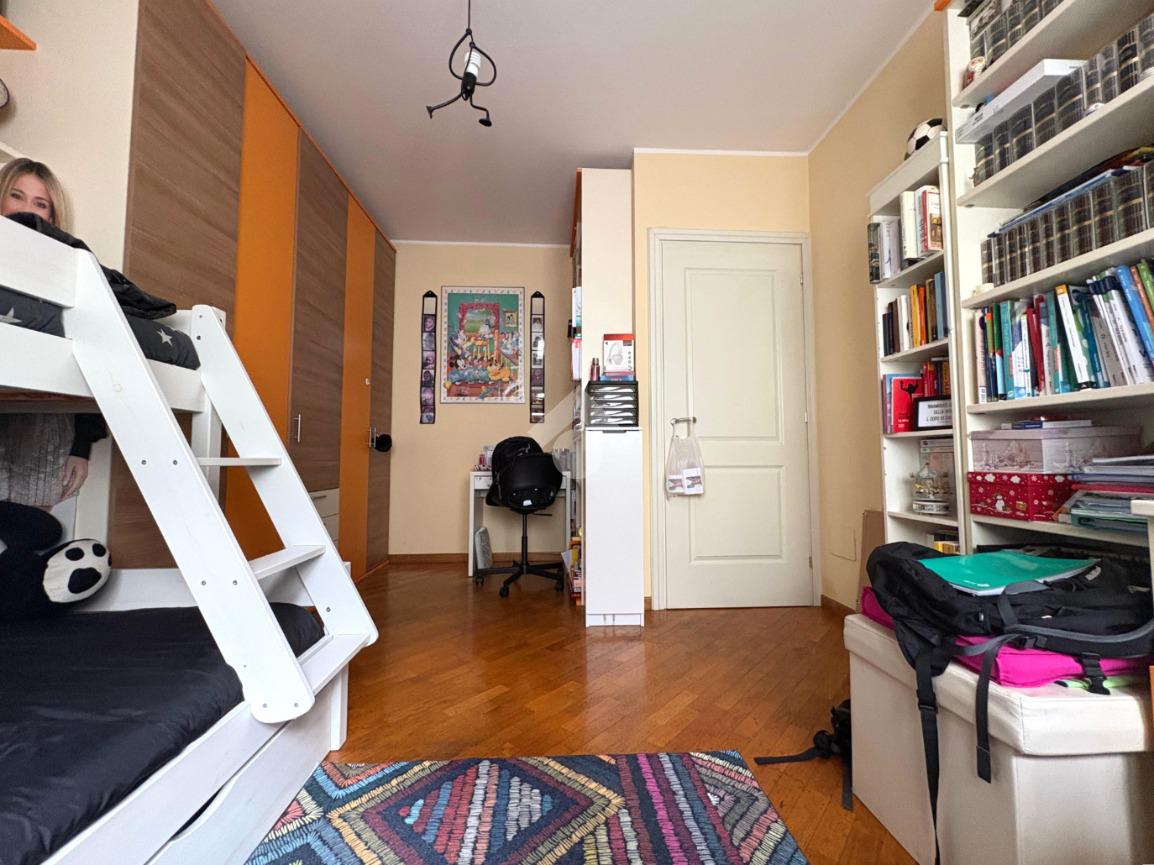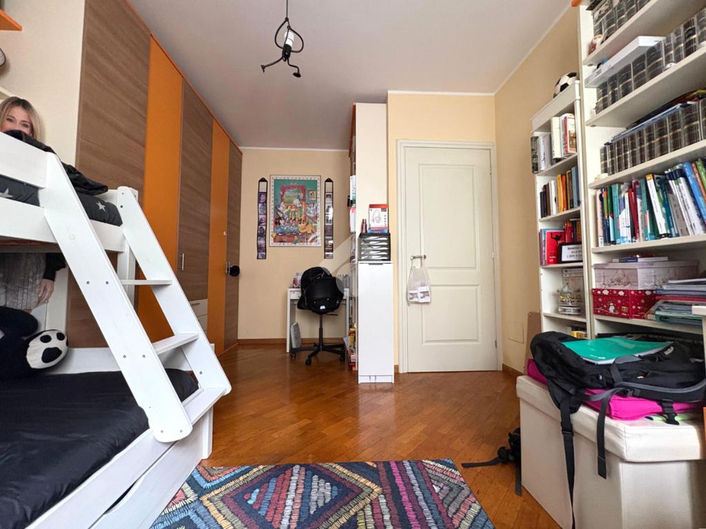 Un disimpegno accompagna alla zona notte, composta da un bagno finestrato dotato di box doccia, da una camera matrimoniale con balcone privato e da una camera singola di generose dimensioni, che può essere utilizzata anche come studio o stanza per ospiti.