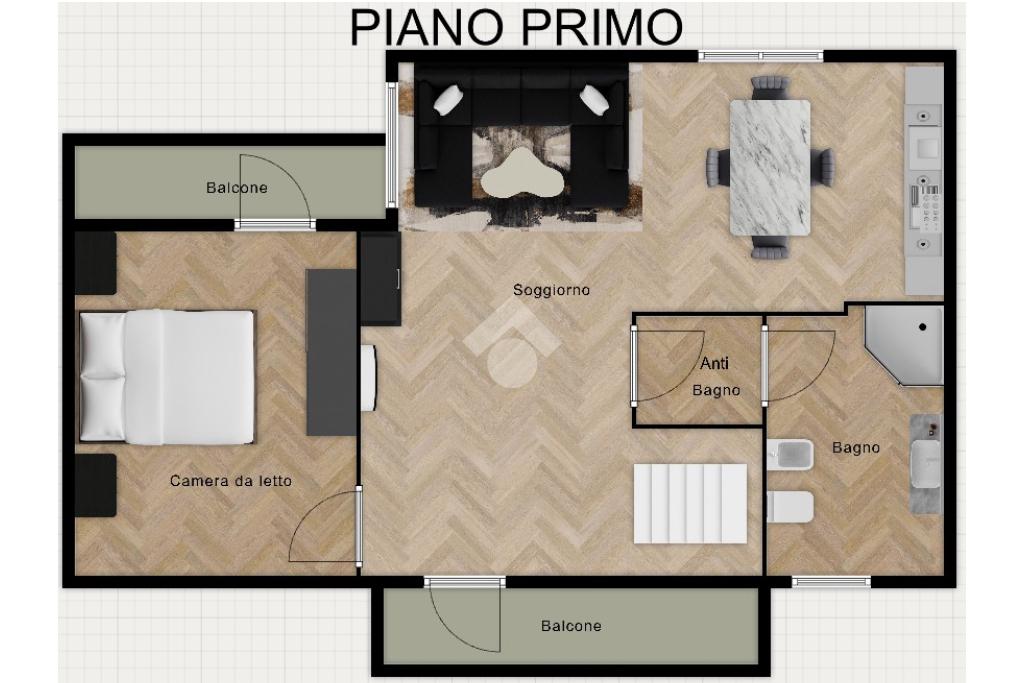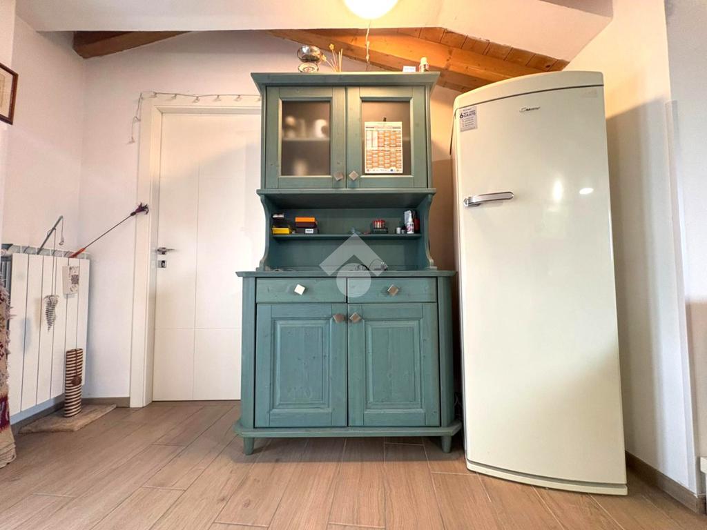 All’ingresso si viene accolti da una luminosa zona giorno con angolo cottura, impreziosita da travi a vista e da un soppalco funzionale, ideale come piccolo studio, area relax o spazio aggiuntivo per gli ospiti. Dal soggiorno si accede al balcone dedicato, perfetto per godere della tranquillità della zona.