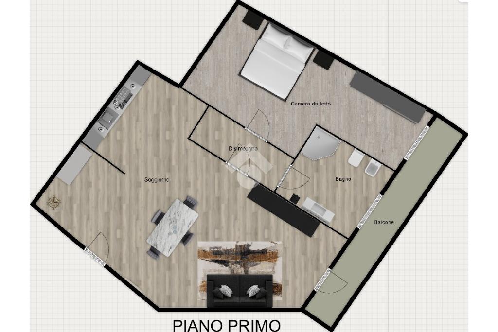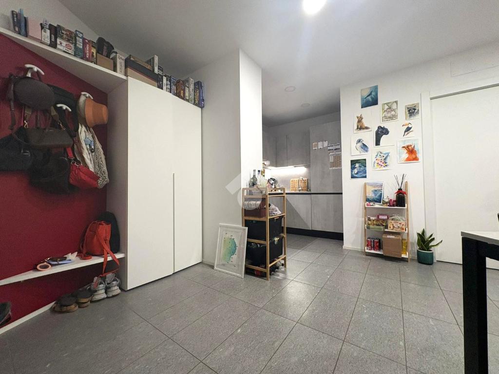 L’ingresso si apre su una luminosa zona giorno con angolo cottura, caratterizzata da spazi ben organizzati e dall’accesso diretto a un balcone riservato, ideale come estensione esterna dell’ambiente principale.