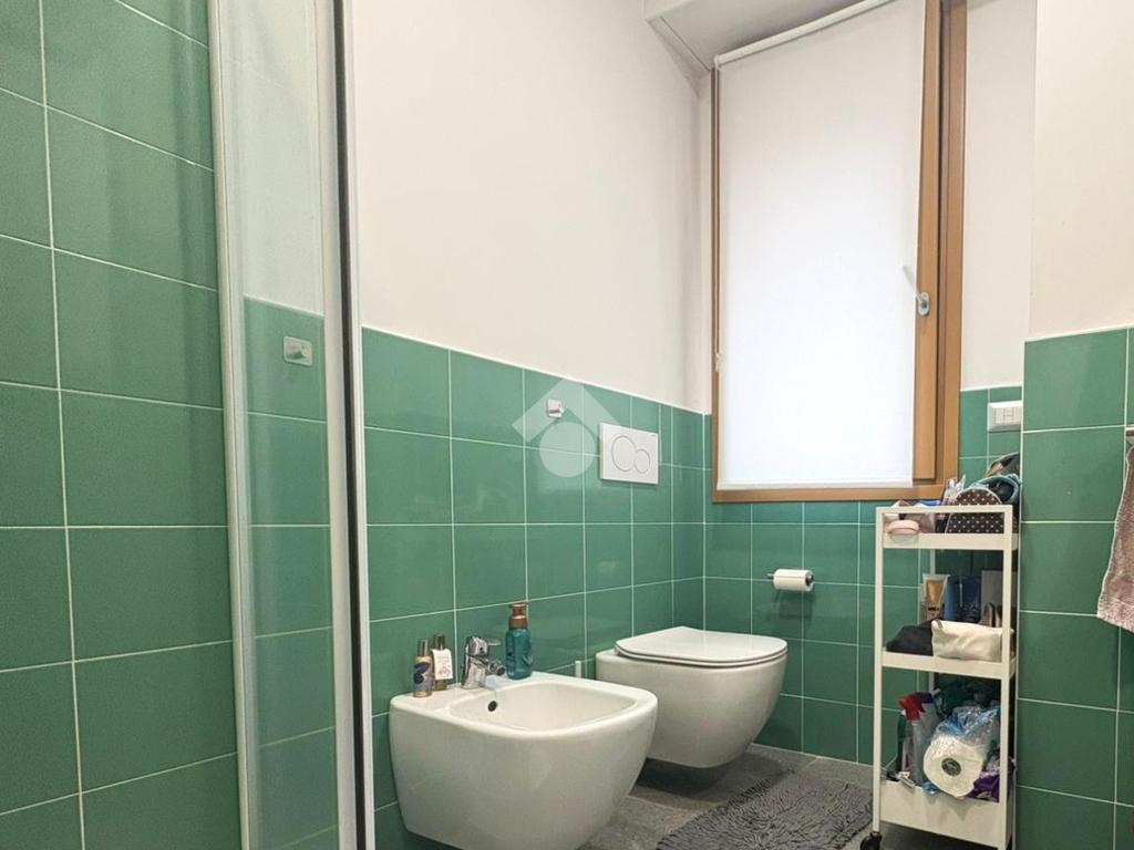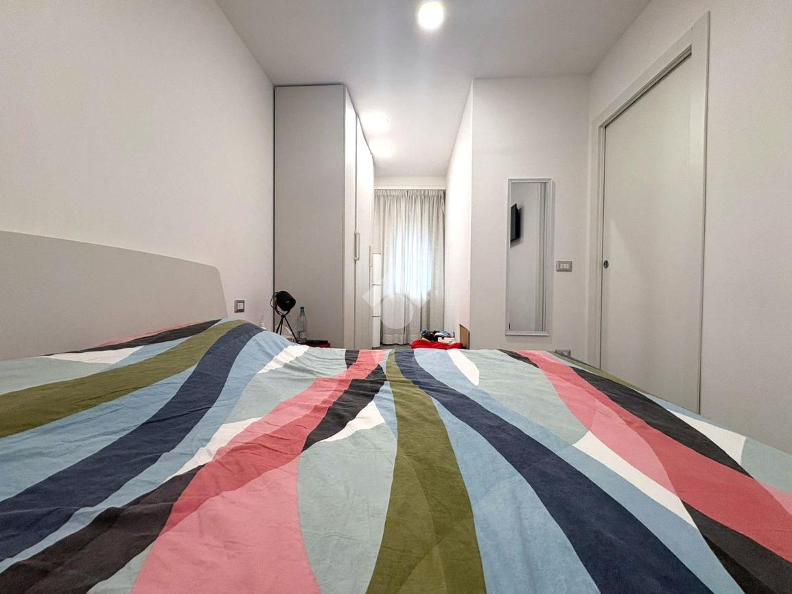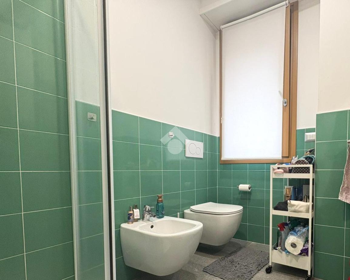 Il disimpegno conduce alla zona notte, composta da una camera matrimoniale di buone dimensioni e da un bagno finestrato, dotato di box doccia e finiture moderne.