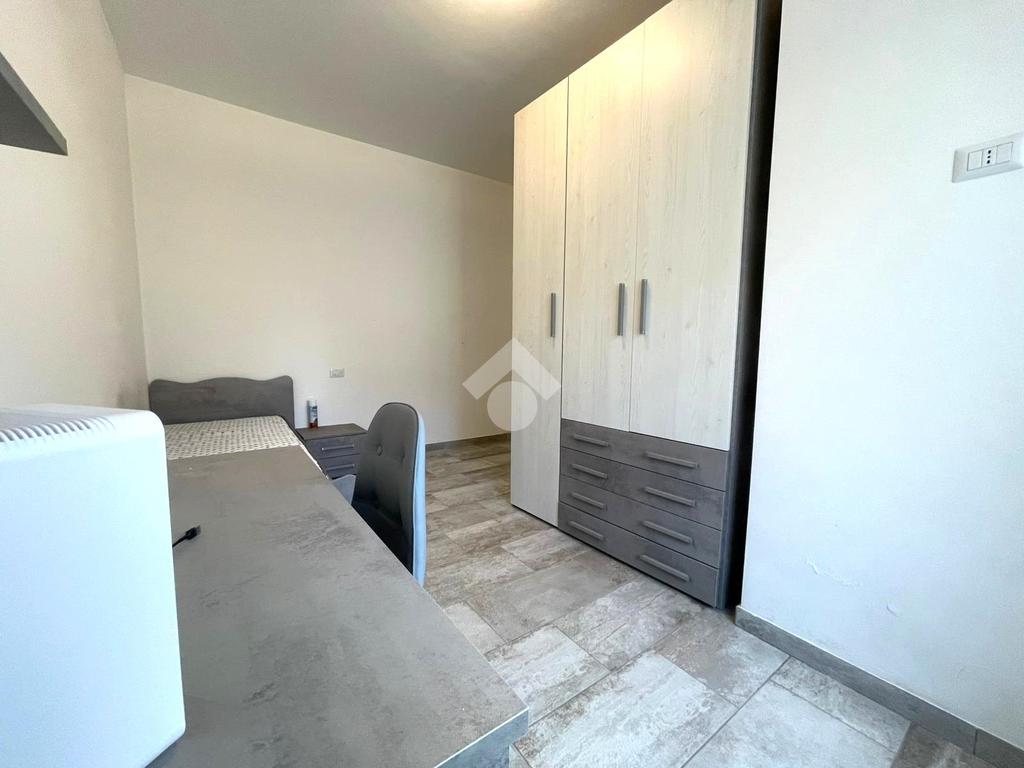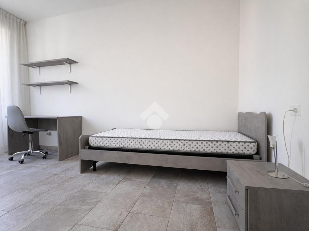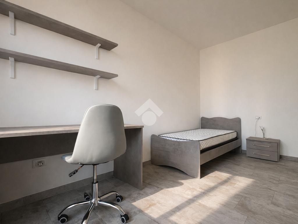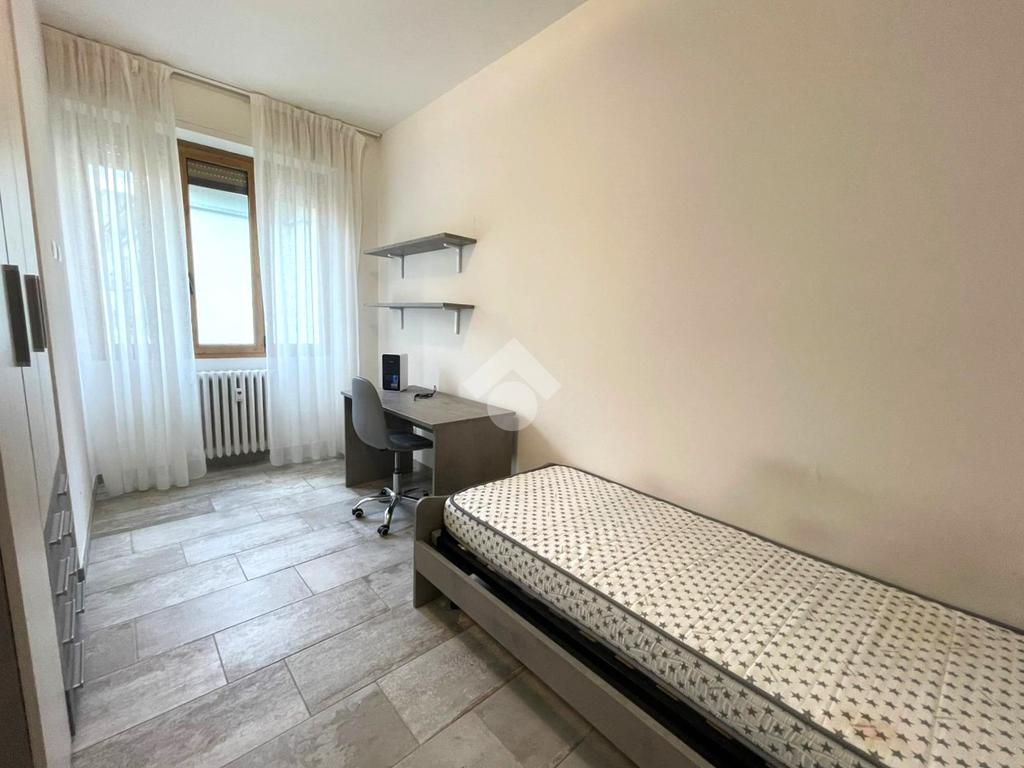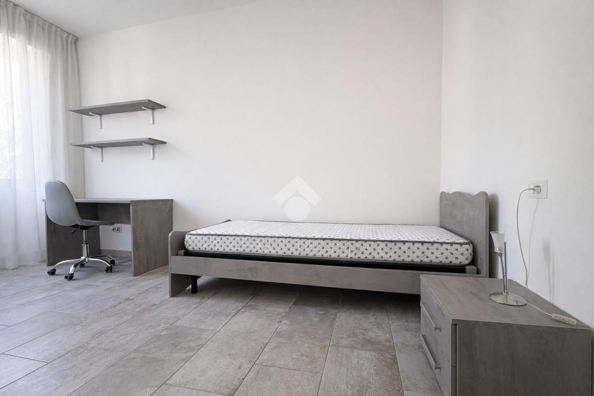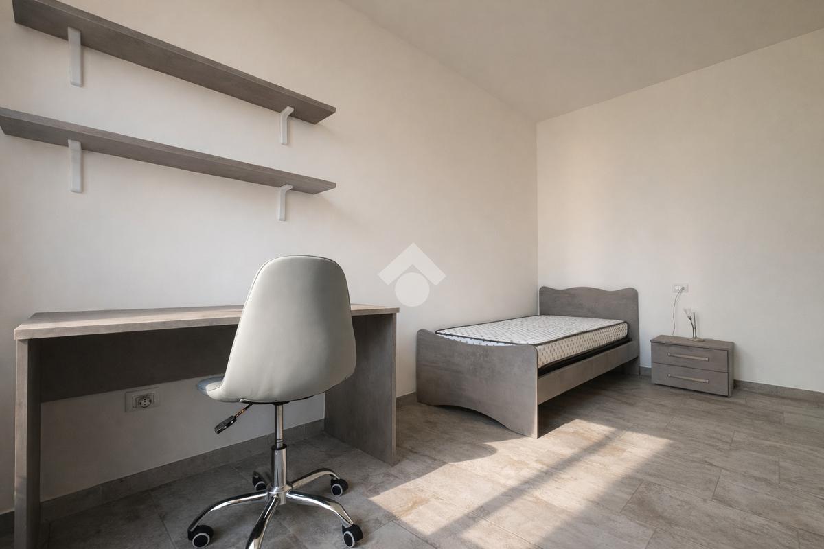 La zona notte comprende una camera matrimoniale, una camera singola e un bagno finestrato completo di box doccia.