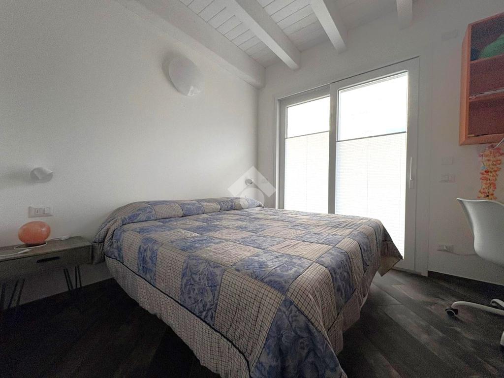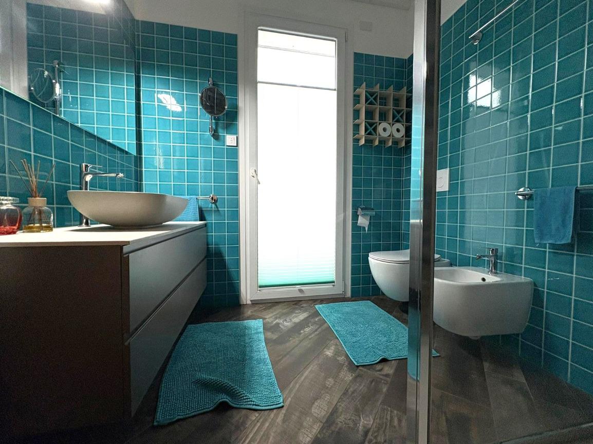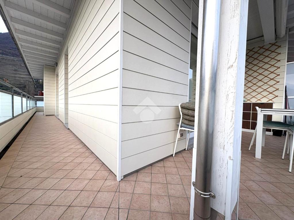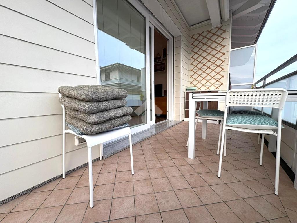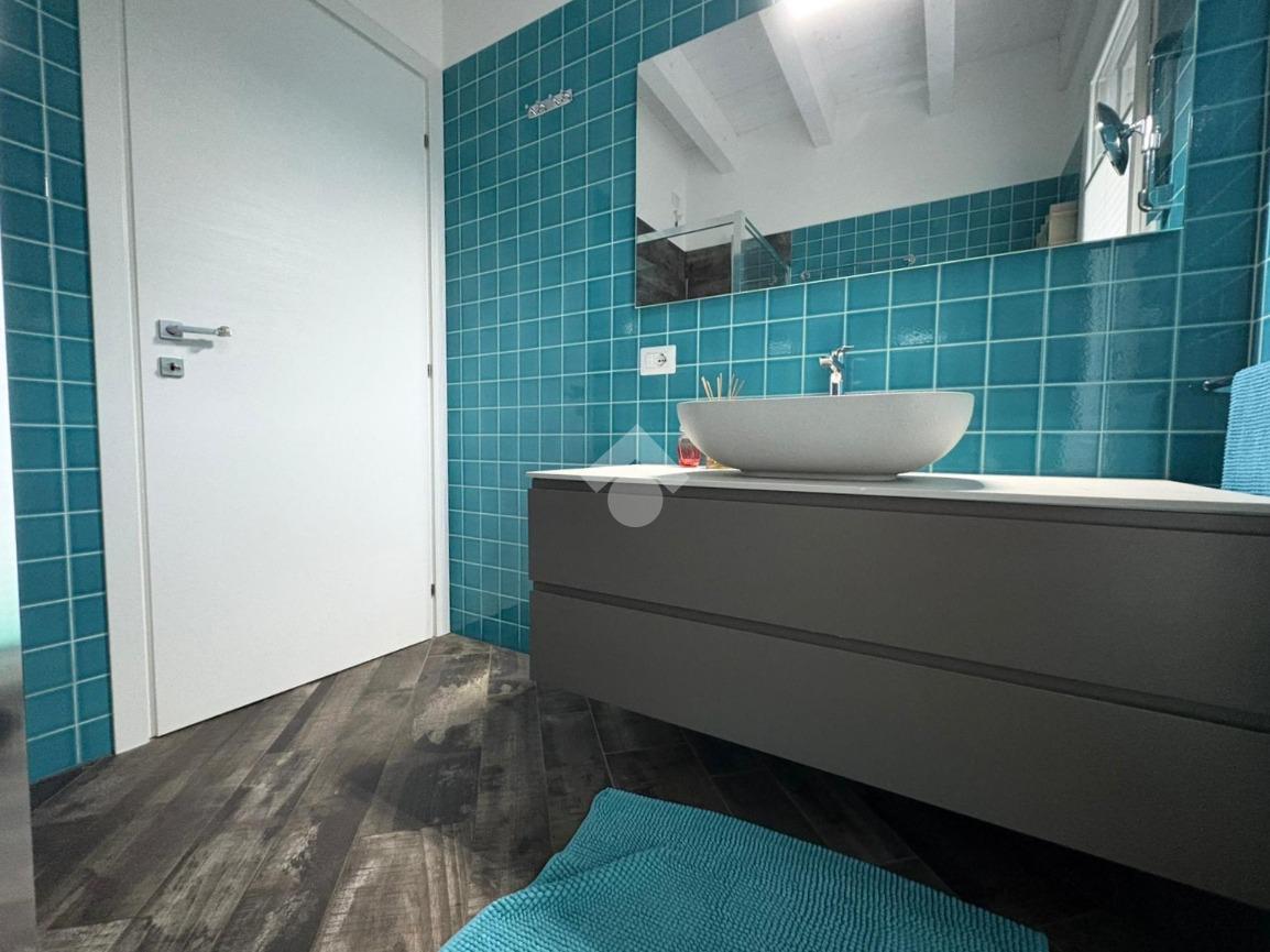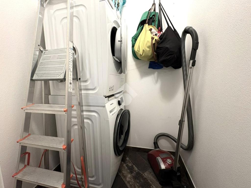 Il bagno, dotato di un comodo box doccia, dispone anch’esso di accesso al balcone. A completare la funzionalità dell’abitazione, un pratico ripostiglio progettato per ospitare lavatrice e asciugatrice.