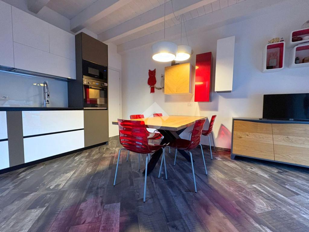La zona giorno è caratterizzata da un luminoso soggiorno con angolo cottura e da due accessi al terrazzo principale, uno spazio ampio e ben sfruttabile, ideale per chi apprezza ambienti esterni fruibili durante la bella stagione.