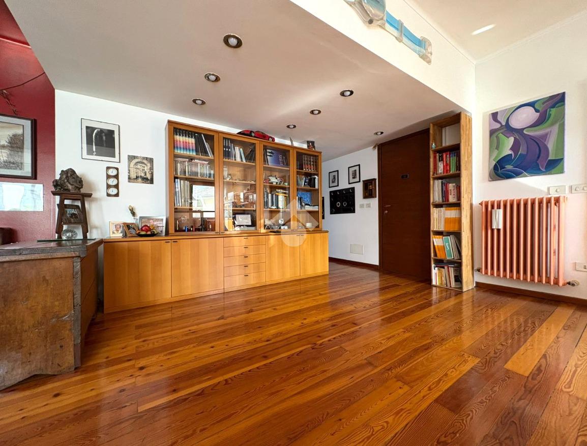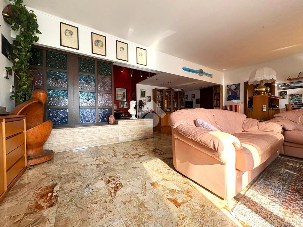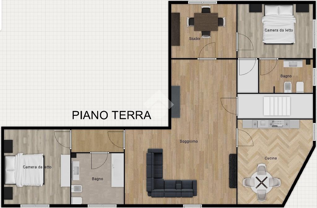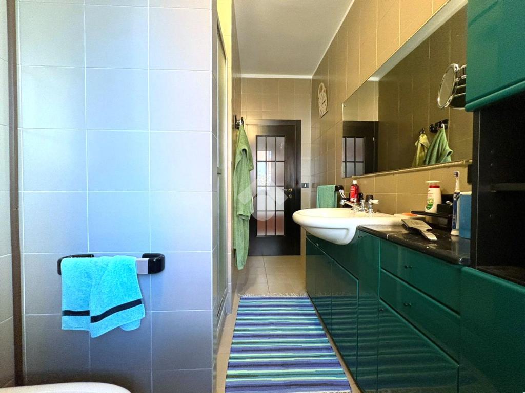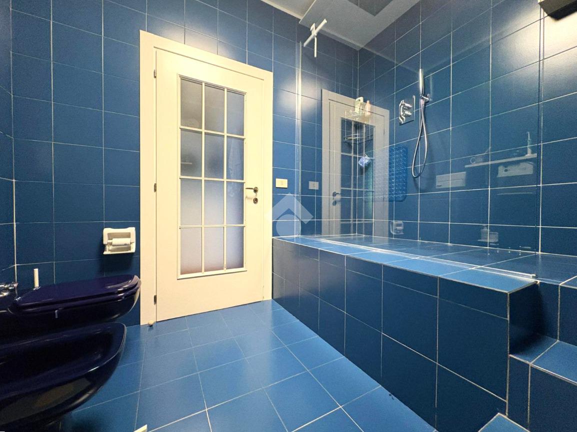 Al piano terra si trova infine un ampio appartamento composto da soggiorno, cucina abitabile, camera matrimoniale, bagno finestrato e seconda camera con bagno privato e cabina armadio.