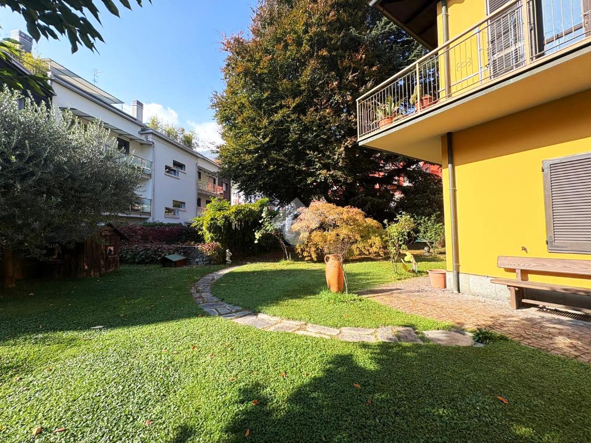 All’esterno, un giardino curato circonda la proprietà, arricchita da doppio accesso e ampie cantine.